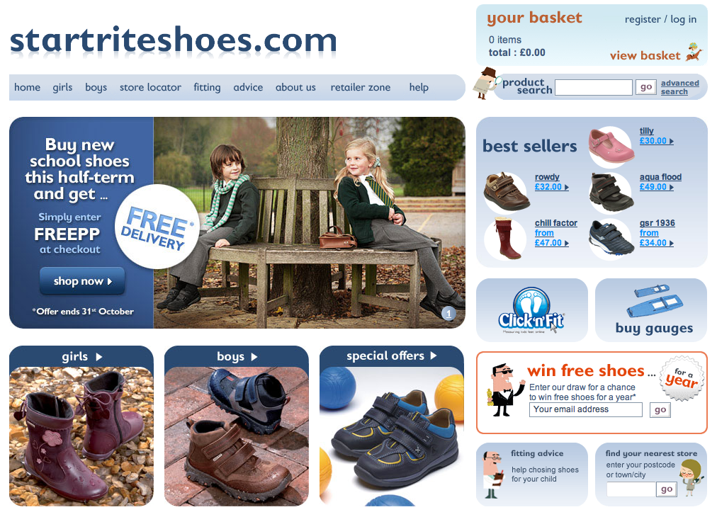 We’re always on the look out for ideas that cross the digital and physical boundary. This week a Dare client told us about his great experience with Startriteshoes.com. He’s a bit older than their target audience, but his kids aren’t, and he has been impressed by their quality and fit. That said, to get hold of the product, parents will undoubtebly know the discomfort of dragging their children out at the weekend to try shoes, only a trip dentist can match the inevitable lack of enthusiasm.